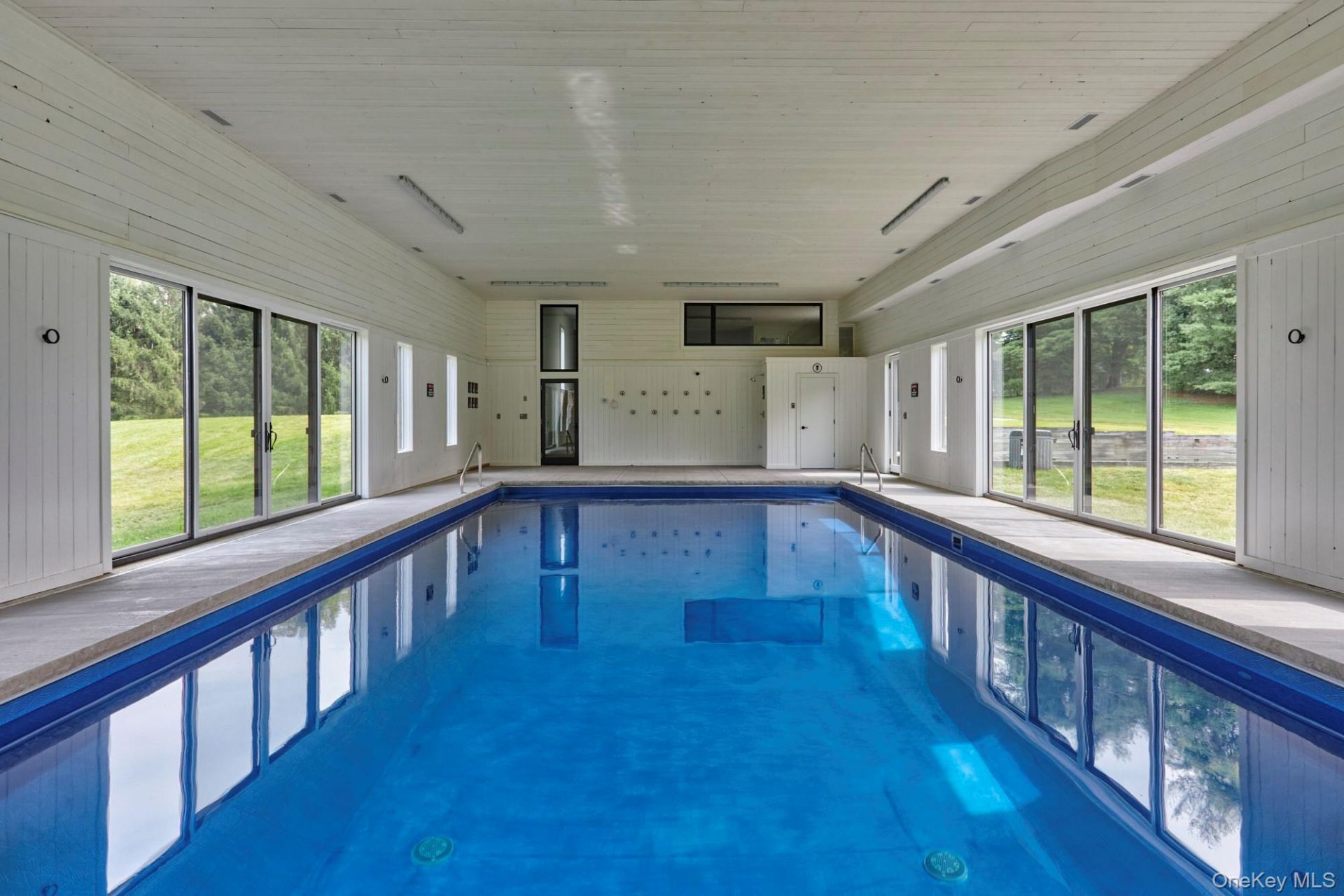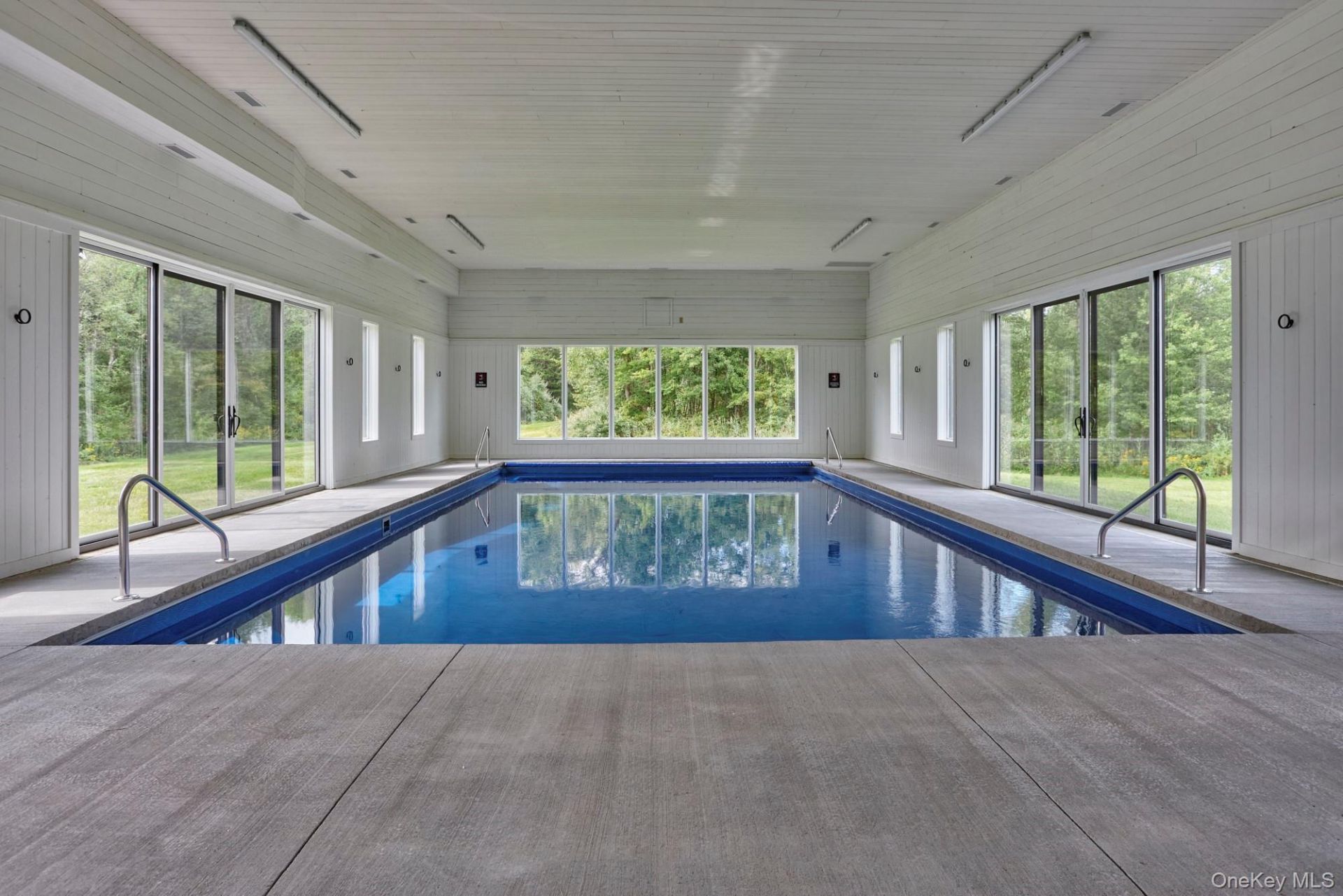 An exceptional indoor swimming pool sets the tone for Cold Spring Creek House-a rare Hudson Valley estate designed for those who expect both luxury and privacy. Whether for early morning laps or evening relaxation, this striking, year-round amenity anchors a home that invites you to truly unwind. Set across 13 serene acres of rolling hills and farmland, this meticulously restored century-old barn offers a refined escape just 90 miles from Midtown Manhattan.Spanning 5,700 square feet, the ground floor features a dramatic great room with 22-foot ceilings, a media and entertainment lounge, and a game room complete with foosball and air hockey. The dining area, complemented by a stylish bar, opens seamlessly to a screened-in porch and an outdoor patio with fire pit-perfect for elegant evenings under the stars.This home sleeps 12 people, starting with the primary suite located on the main level, featuring a king bed and en-suite bath. The barn's lofted upper levels are thoughtfully arranged across three tiers: the first loft level offers two bedrooms with a shared bathroom, comfortably sleeping six with two queen beds and a pair of custom bunk beds. One level up, an additional sleeping area with twin beds provides flexibility for guests. At the top level, a private bedroom with a king bed and en-suite bath offers a quiet, elevated retreat. The home includes seven well-appointed bathrooms throughout. Ideally positioned between Millbrook and Rhinebeck, guests are minutes from top-tier dining, boutique shopping, and destinations such as the Omega Institute, Innisfree Garden, and Millbrook Vineyards and Winery.Cold Spring Creek House is a private sanctuary for those seeking a truly elevated escape.