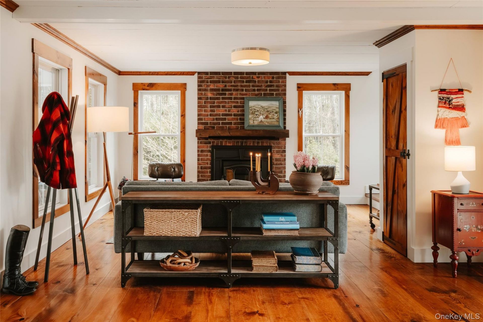 Escape to the countryside in this thoughtfully designed Catskills retreat set on nearly 6 private acres.This newer build blends old-world farmhouse charm with modern ease, featuring wide-plank barnwood floors, shiplap detailing, and oversized windows that fill the home with natural light. A wood-burning brick fireplace anchors the main living space, while the kitchen offers stone countertops, a Wolf gas range, and a farmhouse sink with views of the surrounding woods and ridgeline.Upstairs are two king-sized bedrooms and a full bath with integrated laundry. The finished daylight lower level, complete with a second full bath and private entry, offers flexible space for guests, work, or studio use.Outdoors, enjoy total privacy surrounded by woods, mature landscaping, rocky outcroppings, a fenced vegetable garden, and a level yard. A large deck takes in the ridge views, while solar panels and an EV charger support efficient, modern living.Located in Eldred near Barryville and just 20 minutes to Narrowsburg, with easy access to the Delaware River, hiking, dining, and a growing arts scene. Approximately 2 hours by car to NYC and 30 minutes to Port Jervis for train access to Manhattan.