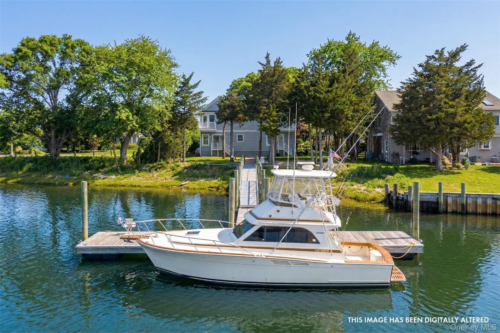 This newly constructed, post-modern waterfront home offers a unique blend of elegance and functionality. With three spacious bedrooms and three full bathrooms, it's designed to provide comfort and convenience in equal measure. The heart of this home is undoubtedly the kitchen, equipped with granite countertops, a stainless-steel package and Viking range. An island featuring a Black Walnut countertop not only adds a touch of sophistication but also provides additional workspace for culinary adventures. The home's heating system is powered by propane, ensuring a warm and cozy environment during the colder months. Outside, a 15x15 pressure-treated deck and 12x47 paver patio offers an ideal spot for outdoor dining or simply enjoying the breathtaking water views. The property also features a five-zone irrigation system, and an on-site home generator. The home's exterior is further enhanced by a front portico with a distinctive copper roof, adding a touch of elegance to the overall design. What sets this property apart is the 40' deep water dock. Whether you're a boating enthusiast or simply enjoy the serenity of waterfront living, this feature is sure to appeal. This home is part of a welcoming community where luxury meets comfort and where every detail has been thoughtfully considered.