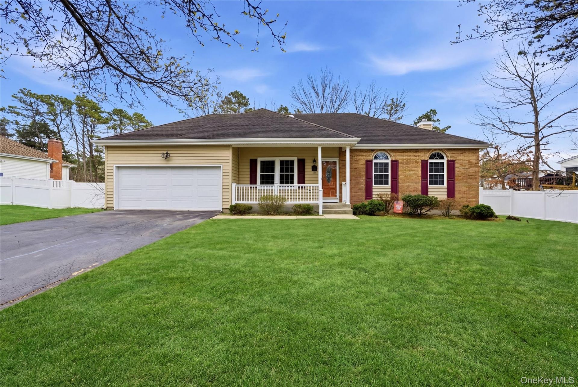 Welcome to Pine Woods at Coram-where everyday living feels effortlessly elevated. This expanded ranch is far more than meets the eye, offering the ease of true one-level living wrapped in a thoughtfully designed, open-concept layout. From the moment you step inside, a formal living room welcomes you and flows seamlessly into a relaxed dining space-perfect for both intimate dinners and lively gatherings. At the heart of the home, a center island kitchen opens to a sunlit den with soaring 11-foot ceilings, creating a space that feels both grand and inviting. The full basement with high ceilings and an egress window offers endless possibilities-whether you envision a home gym, media retreat, or extended living space-while still providing abundant storage. Outside, enjoy a fully fenced yard and the convenience of a two-car garage. This is easy, future-forward living-just minutes from shopping, major highways, and town beaches known for some of Long Island's most breathtaking sunsets.