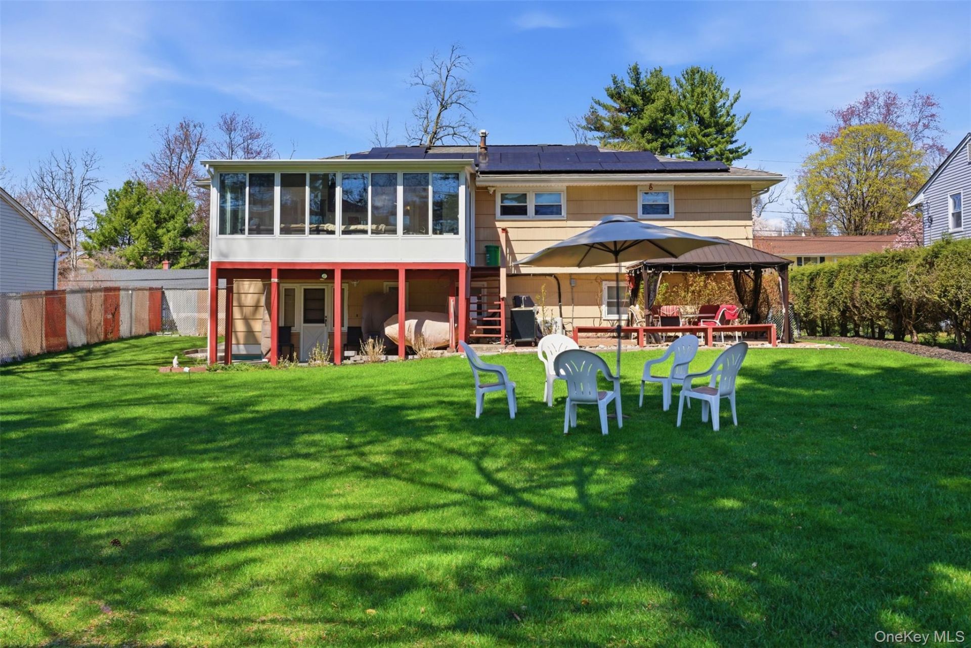 Discover the charm of 4 Faist Dr, located in one of Spring Valley's most desirable private cul-de-sacs. This inviting home boasts a bright and airy layout with a spacious living room, formal dining room, and a high-end kitchen with hardwood flooring throughout. Relax in the sun-drenched four-season sunroom, offering tranquility and scenic views. The upper level includes three well-appointed bedrooms, while the lower level provides two additional bedrooms with private access and a separate living area-perfect for guests or extended living. The fully private backyard, enhanced by a six-zone sprinkler system, offers a lush and serene outdoor retreat.